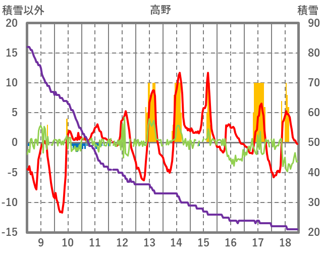 | 日 | 時 | 気温 | 降水 | 風向/風速 | 日照 | 積雪 | 降雪 |