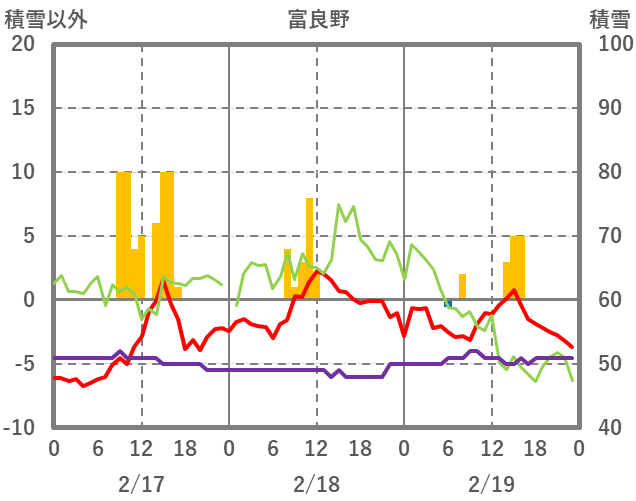 | 日 | 時 | 気温 | 降水 | 風向/風速 | 日照 | 積雪 | 降雪 |