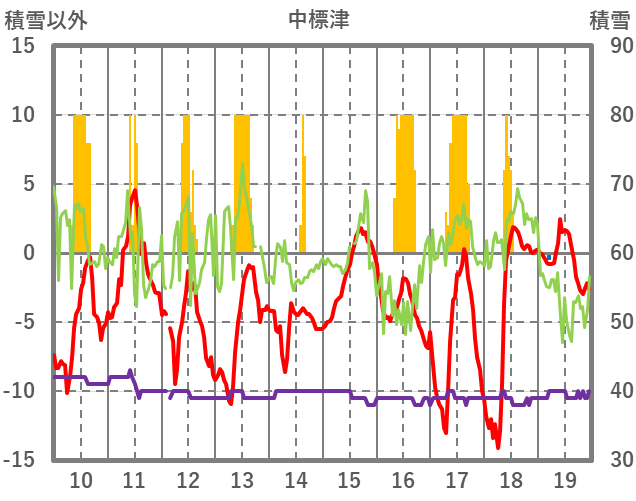 | 日 | 時 | 気温 | 降水 | 風向/風速 | 日照 | 積雪 | 降雪 |