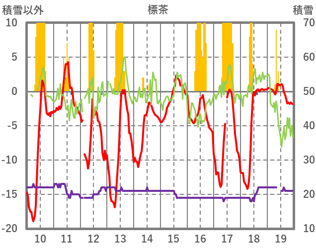 | 日 | 時 | 気温 | 降水 | 風向/風速 | 日照 | 積雪 | 降雪 |