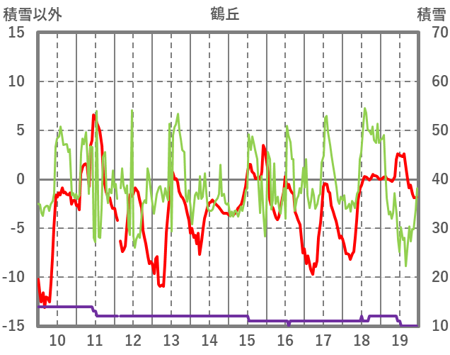 | 日 | 時 | 気温 | 降水 | 風向/風速 | 日照 | 積雪 | 降雪 |