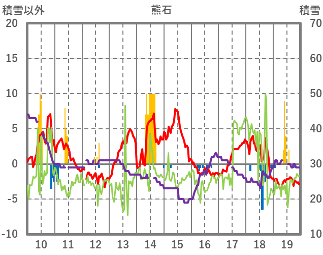 | 日 | 時 | 気温 | 降水 | 風向/風速 | 日照 | 積雪 | 降雪 |