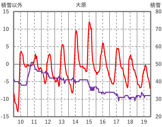 | 日 | 時 | 気温 | 降水 | 風向/風速 | 日照 | 積雪 | 降雪 |