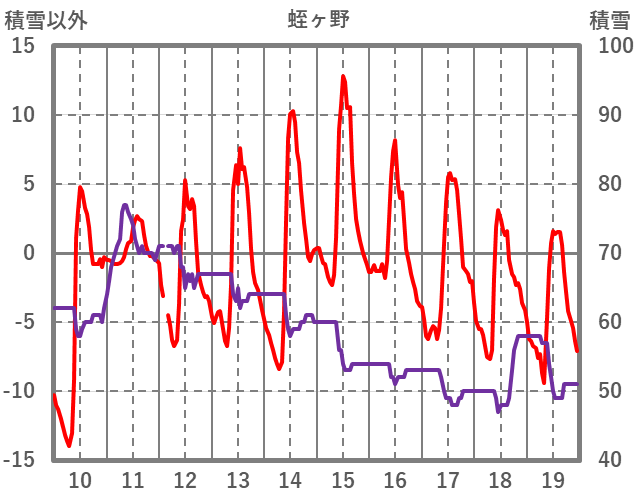 | 日 | 時 | 気温 | 降水 | 風向/風速 | 日照 | 積雪 | 降雪 |