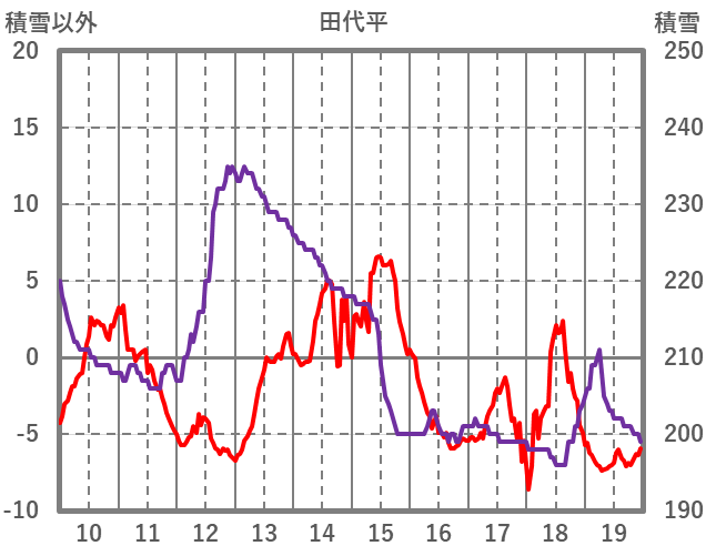 | 日 | 時 | 気温 | 降水 | 風向/風速 | 日照 | 積雪 | 降雪 |