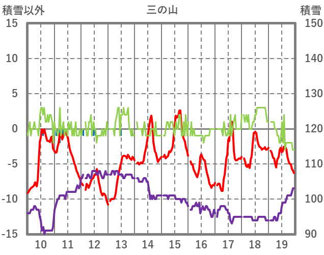 | 日 | 時 | 気温 | 降水 | 風向/風速 | 日照 | 積雪 | 降雪 |