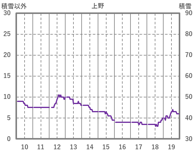 | 日 | 時 | 気温 | 降水 | 風向/風速 | 日照 | 積雪 | 降雪 |