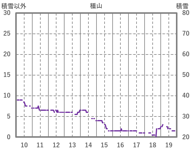 | 日 | 時 | 気温 | 降水 | 風向/風速 | 日照 | 積雪 | 降雪 |