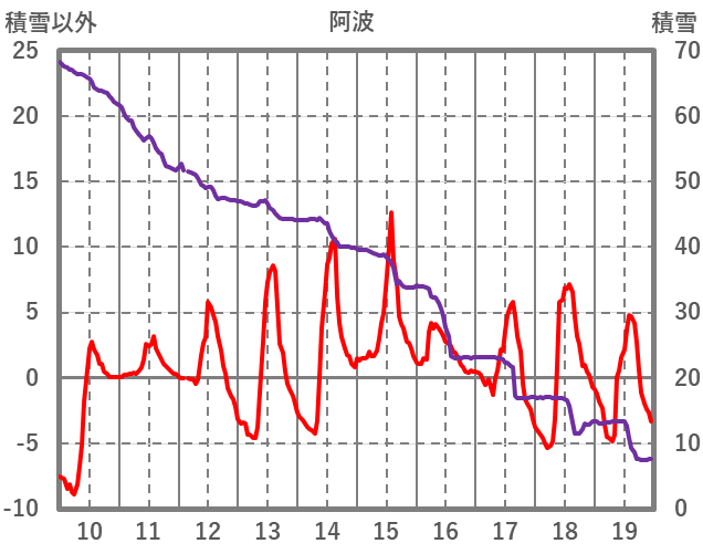 | 日 | 時 | 気温 | 降水 | 風向/風速 | 日照 | 積雪 | 降雪 |