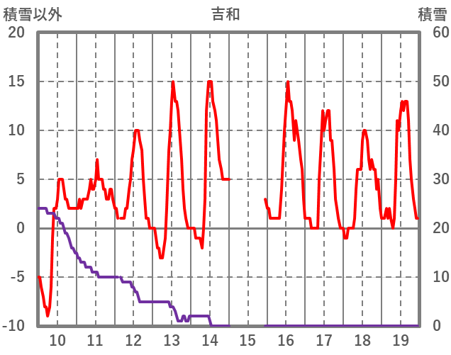 | 日 | 時 | 気温 | 降水 | 風向/風速 | 日照 | 積雪 | 降雪 |