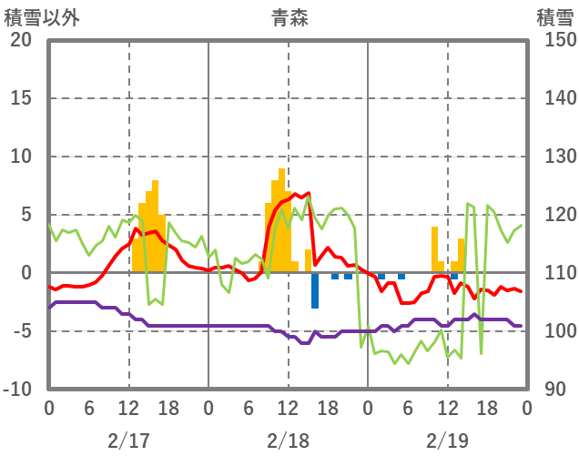| 日 | 時 | 気温 | 降水 | 風向/風速 | 日照 | 積雪 | 降雪 |