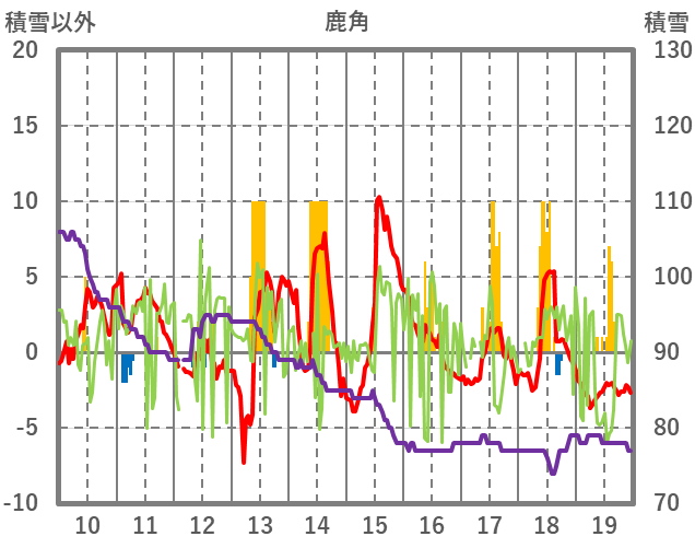| 日 | 時 | 気温 | 降水 | 風向/風速 | 日照 | 積雪 | 降雪 |