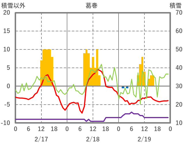 | 日 | 時 | 気温 | 降水 | 風向/風速 | 日照 | 積雪 | 降雪 |