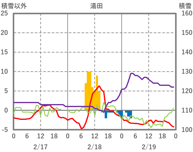 | 日 | 時 | 気温 | 降水 | 風向/風速 | 日照 | 積雪 | 降雪 |