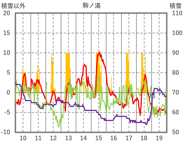| 日 | 時 | 気温 | 降水 | 風向/風速 | 日照 | 積雪 | 降雪 |