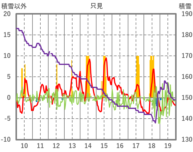 | 日 | 時 | 気温 | 降水 | 風向/風速 | 日照 | 積雪 | 降雪 |