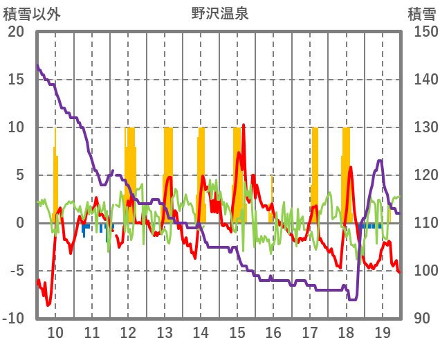 | 日 | 時 | 気温 | 降水 | 風向/風速 | 日照 | 積雪 | 降雪 |