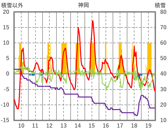 | 日 | 時 | 気温 | 降水 | 風向/風速 | 日照 | 積雪 | 降雪 |