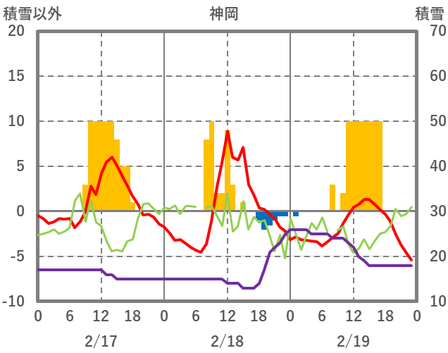 | 日 | 時 | 気温 | 降水 | 風向/風速 | 日照 | 積雪 | 降雪 |