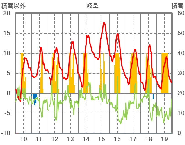 | 日 | 時 | 気温 | 降水 | 風向/風速 | 日照 | 積雪 | 降雪 |