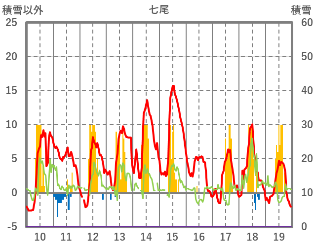 | 日 | 時 | 気温 | 降水 | 風向/風速 | 日照 | 積雪 | 降雪 |