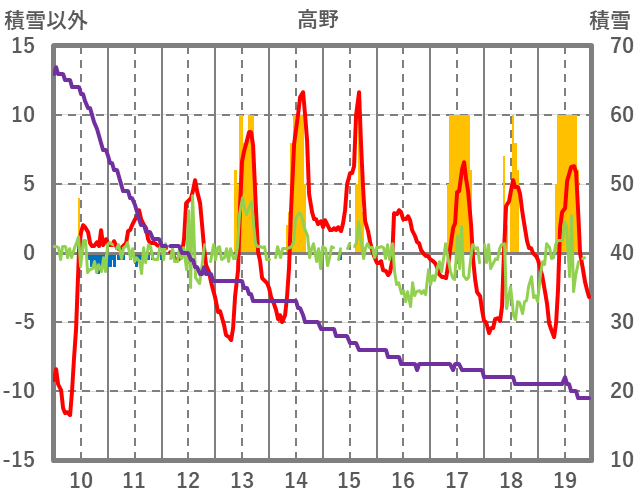 | 日 | 時 | 気温 | 降水 | 風向/風速 | 日照 | 積雪 | 降雪 |