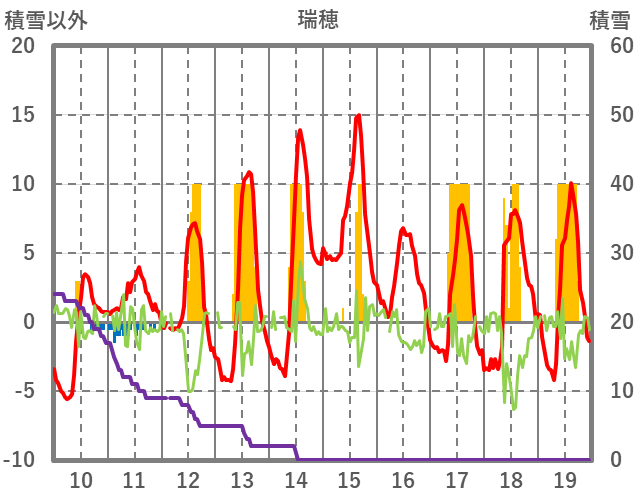 | 日 | 時 | 気温 | 降水 | 風向/風速 | 日照 | 積雪 | 降雪 |