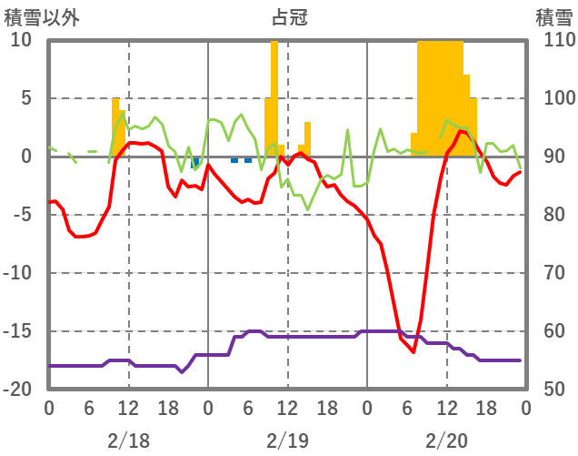 | 日 | 時 | 気温 | 降水 | 風向/風速 | 日照 | 積雪 | 降雪 |