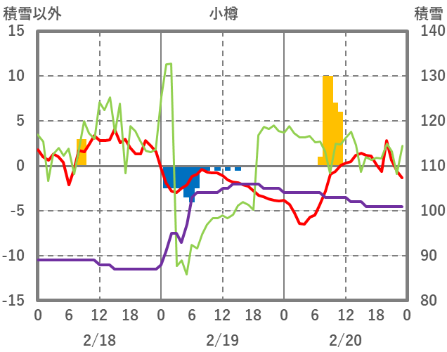 | 日 | 時 | 気温 | 降水 | 風向/風速 | 日照 | 積雪 | 降雪 |