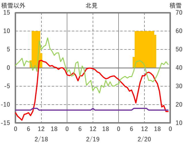 | 日 | 時 | 気温 | 降水 | 風向/風速 | 日照 | 積雪 | 降雪 |