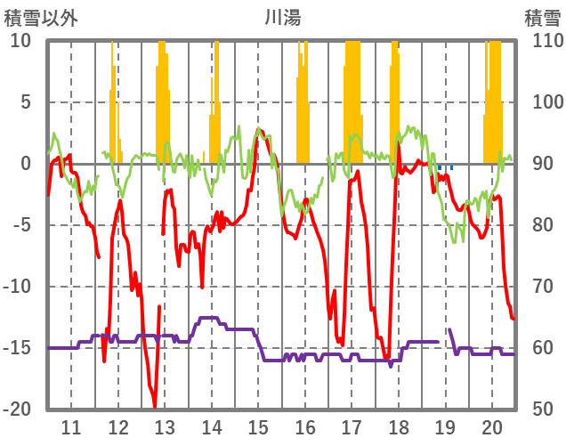 | 日 | 時 | 気温 | 降水 | 風向/風速 | 日照 | 積雪 | 降雪 |