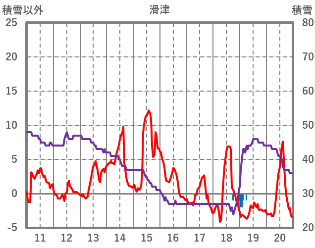| 日 | 時 | 気温 | 降水 | 風向/風速 | 日照 | 積雪 | 降雪 |