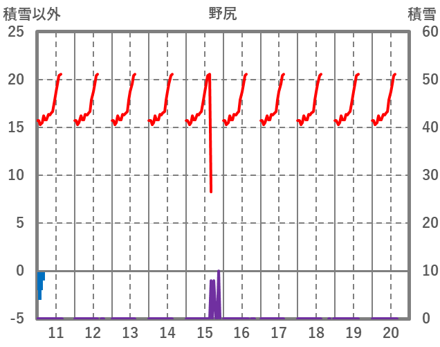 | 日 | 時 | 気温 | 降水 | 風向/風速 | 日照 | 積雪 | 降雪 |