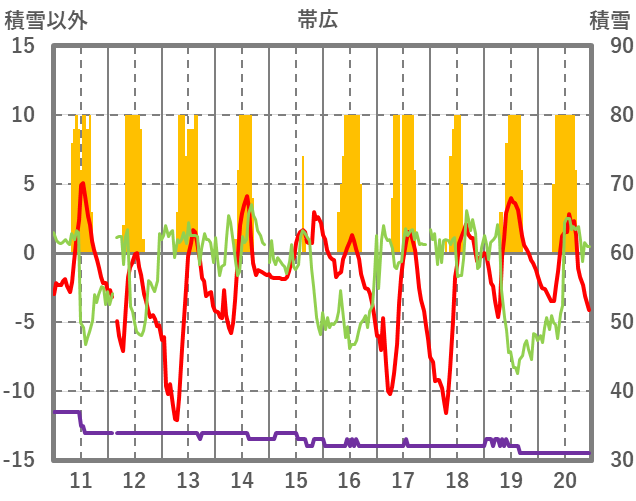 | 日 | 時 | 気温 | 降水 | 風向/風速 | 日照 | 積雪 | 降雪 |