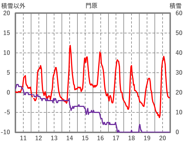 | 日 | 時 | 気温 | 降水 | 風向/風速 | 日照 | 積雪 | 降雪 |