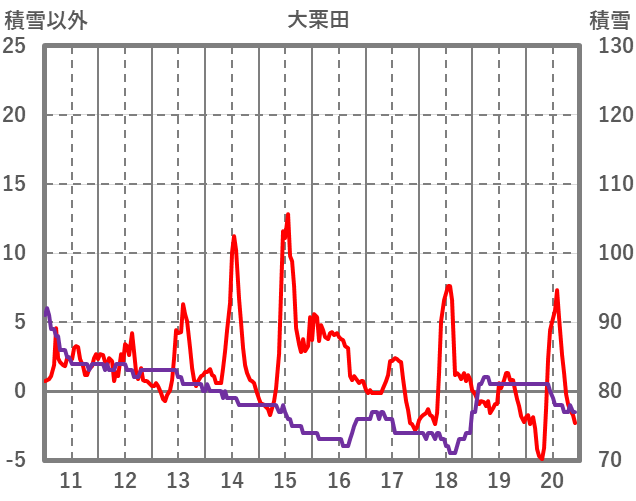 | 日 | 時 | 気温 | 降水 | 風向/風速 | 日照 | 積雪 | 降雪 |