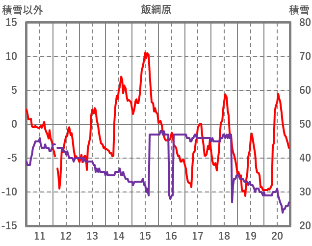 | 日 | 時 | 気温 | 降水 | 風向/風速 | 日照 | 積雪 | 降雪 |