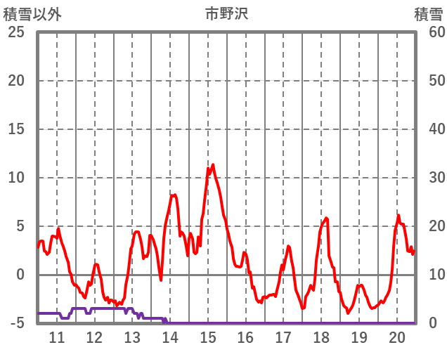 | 日 | 時 | 気温 | 降水 | 風向/風速 | 日照 | 積雪 | 降雪 |