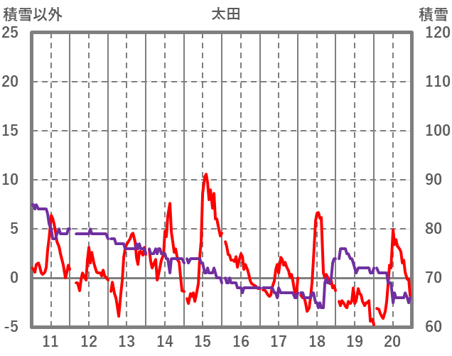 | 日 | 時 | 気温 | 降水 | 風向/風速 | 日照 | 積雪 | 降雪 |