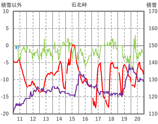 | 日 | 時 | 気温 | 降水 | 風向/風速 | 日照 | 積雪 | 降雪 |