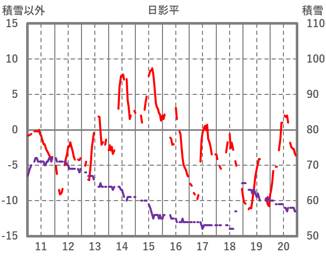 | 日 | 時 | 気温 | 降水 | 風向/風速 | 日照 | 積雪 | 降雪 |