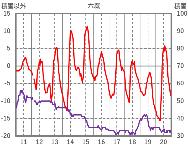 | 日 | 時 | 気温 | 降水 | 風向/風速 | 日照 | 積雪 | 降雪 |