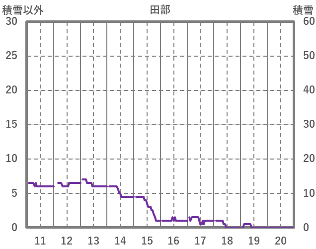 | 日 | 時 | 気温 | 降水 | 風向/風速 | 日照 | 積雪 | 降雪 |