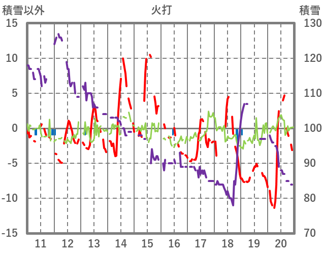 | 日 | 時 | 気温 | 降水 | 風向/風速 | 日照 | 積雪 | 降雪 |