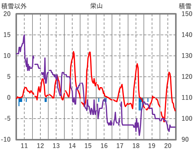 | 日 | 時 | 気温 | 降水 | 風向/風速 | 日照 | 積雪 | 降雪 |