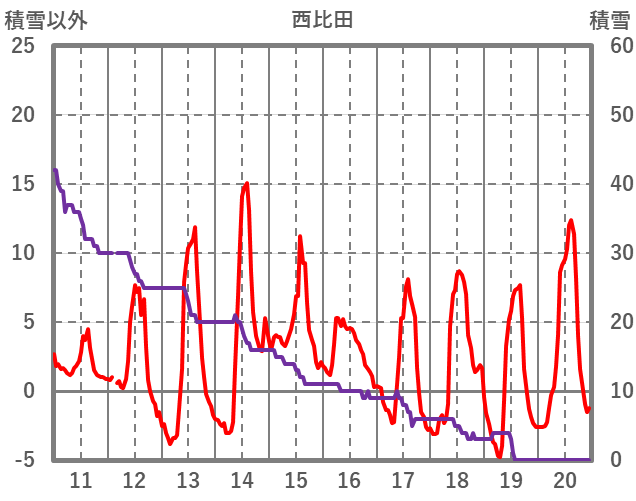 | 日 | 時 | 気温 | 降水 | 風向/風速 | 日照 | 積雪 | 降雪 |