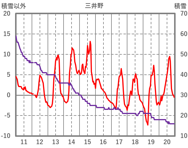 | 日 | 時 | 気温 | 降水 | 風向/風速 | 日照 | 積雪 | 降雪 |