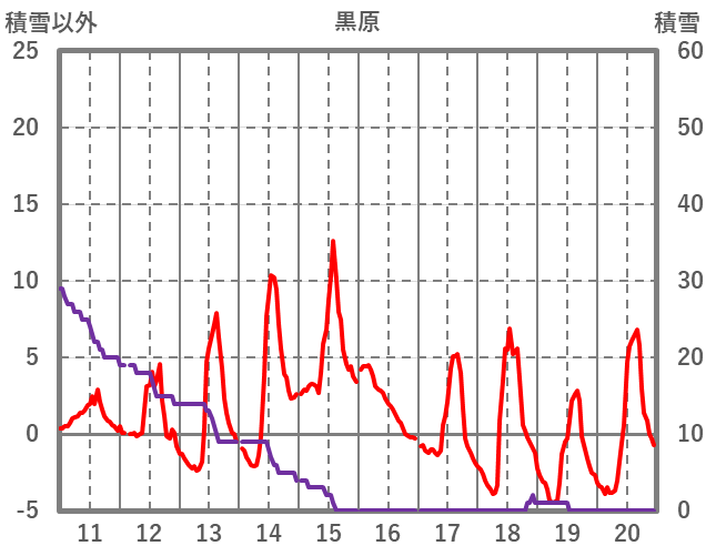| 日 | 時 | 気温 | 降水 | 風向/風速 | 日照 | 積雪 | 降雪 |