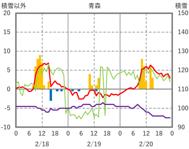 | 日 | 時 | 気温 | 降水 | 風向/風速 | 日照 | 積雪 | 降雪 |