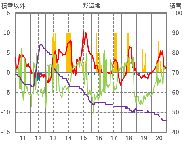 | 日 | 時 | 気温 | 降水 | 風向/風速 | 日照 | 積雪 | 降雪 |